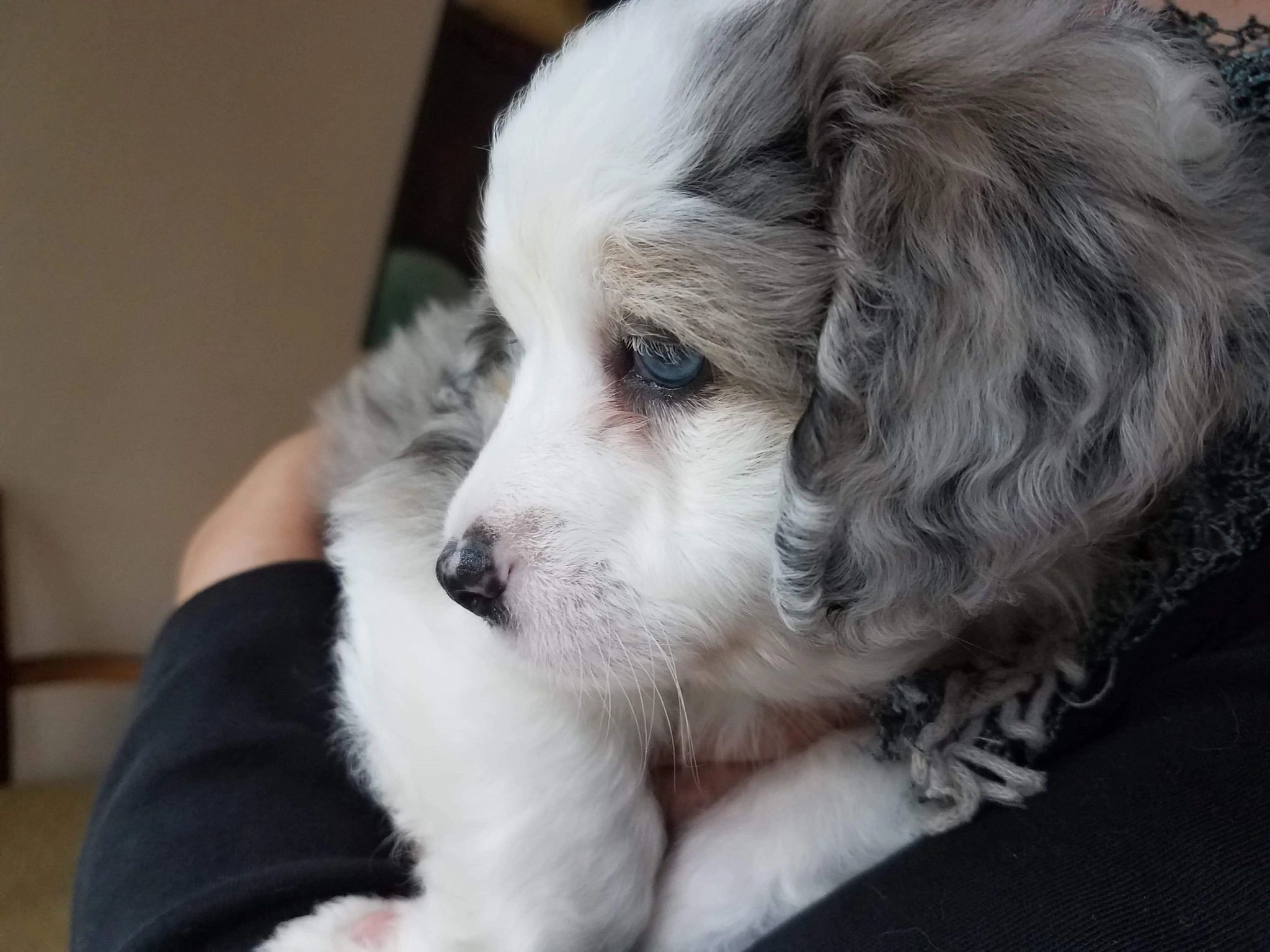 Puppies from Niska & Mr. B will have the fade gene - their coat will lighten as they age. This coat trait comes from Mr. B. He was born black and his coat turned silver. Check out the examples below. Their puppies will weigh between 18 - 30 lbs as an adult.