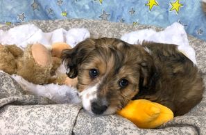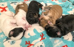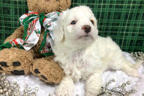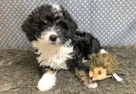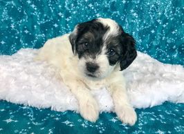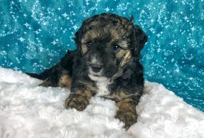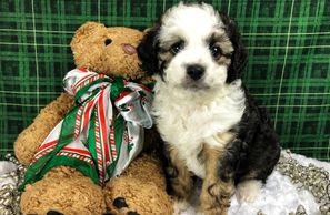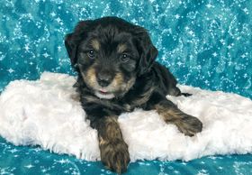 Puppies from Yolo & Mr. B will have the fade gene - their coat will lighten as they turn into an adult. We call them magic doodles. This coat trait comes from Mr. B. He was born black and his coat turned silver. Check out the examples below. Their puppies will weigh between 15 - 25 lbs as an adult.